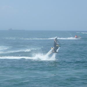 ジェットレブを申し込んだが、かなりの難易度にギブアップ!すると、ジェットバイクにも挑戦させてくれた。上手くいかないが根気よく親切に対応してくれた!