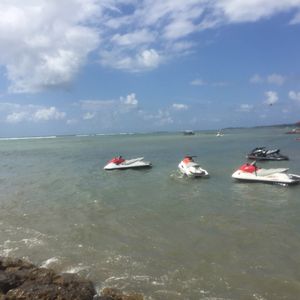 着いて最初にしたのは、ジェットバイク。現地の人と一緒に乗り、スピード感溢れる体験で大変満足しました。次にパラセーリングをやりましたが、それが少し残念⤵︎五分くらいで終了してしまいました。場所の関係か何か分かりませんが、もう少しやりたかったです。次にジェットレブ。水圧が凄くて、最初はうまく立てませんでしたが、だんだんコツを掴み、最終的には比較的長く立つことができました。現地のスタッフの方がポイントを優しく丁寧に教えてくれたので、良かったです。