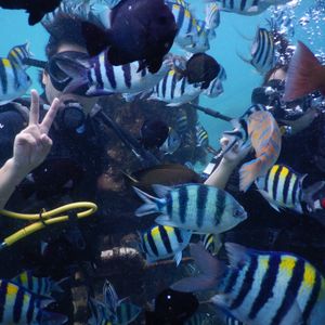日本語のできるスタッフもいて安心してできました!夫は初めてのダイビングでした。説明時間が短く、いきなり海に行きボンベを背負い、大丈夫か?と不安になりましたが、すぐに慣れ最後はとても楽しかった!と言っていました。魚のエサやりも凄く楽しく、1時間という短い時間でしたが十分楽しめました!パラセーリングも高くまで上がったり、バナナボートもとても楽しかったです。3つやっても2時間で終わるので予定を色々入れたい方には凄く良いと思います。