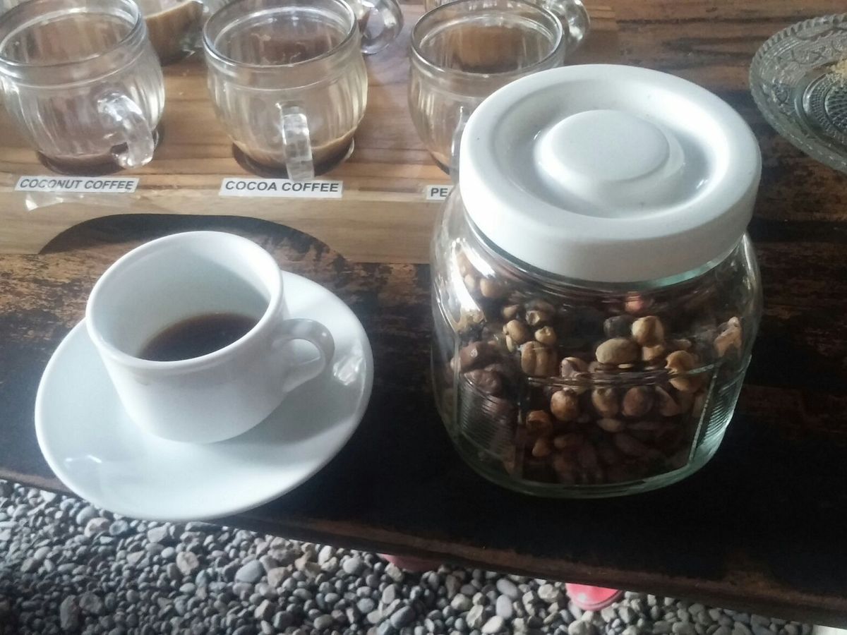 インドネシアの名物のルアックコーヒー(コーヒー豆を食べたジャコウ猫の排泄物から取り出した豆)を飲みに連れて行ってもらった場所は、コーヒーの木や、ジャコウ猫がいる広い庭のようでした。試飲用のコーヒーは何種類もあり当然無料でしたが、ルアックコーヒーは、1杯日本円¥500でした。インドネシア人の平均月収は約4万円で地元の人にとってはとても高価なので飲む事はないとの事でした、2人で1杯頂きました。ブラックで飲んでもスッキリと飲みやすく美味しかったです。