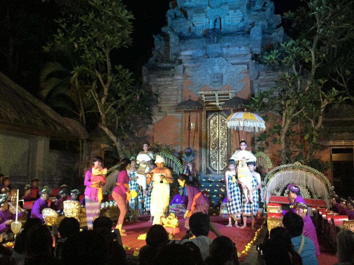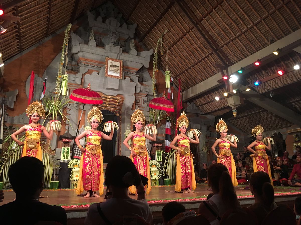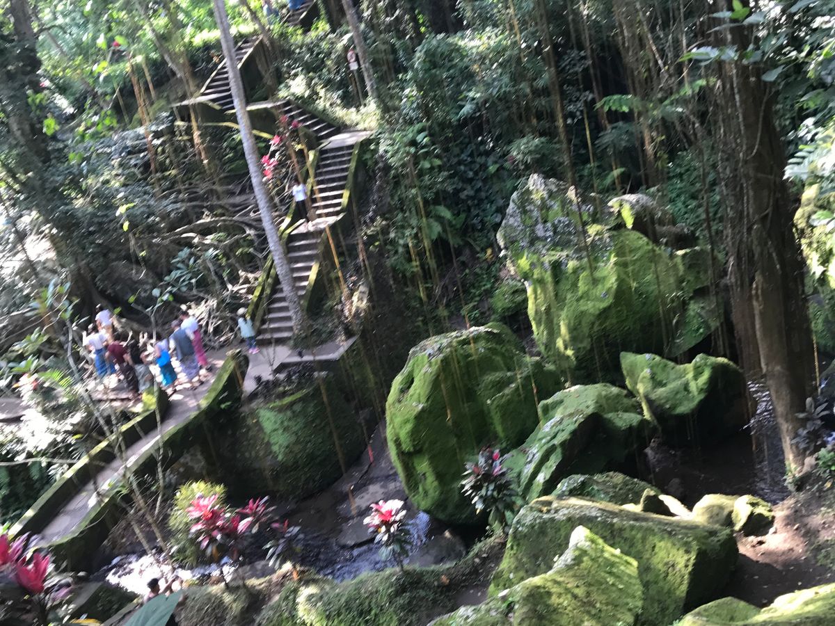 ガイドさんいわく、毎日のことらしい。ホテル前の道を1時間以上かけて抜け、その後も2箇所位渋滞エリアを抜け、ライステラスへ。ライステラスも観光客で、すごい人、人、人。私達もその一因だから、仕方ない。時間が厳しいかも、というのをおねがいして、ゴアガジヤにも寄ってもらい、食事して、バリ舞踊のステージへ。紹介してくれたレストランはきれいで美味しかった〜。ステージは椅子を足して足して、会場満員な中、観客はあらゆる国の人がいるんじゃないかと思う程で、ステージだけじゃなく、オーディエンスを見るのも楽しかったです。終了後、ガイドさんに会えるか不安でしたが、ガイドさんが私達をすぐに見つけてくれて、心強かったです。貸切の気楽さと、行きたい所にも寄ってくれて、満足度高いツアーでした❗️