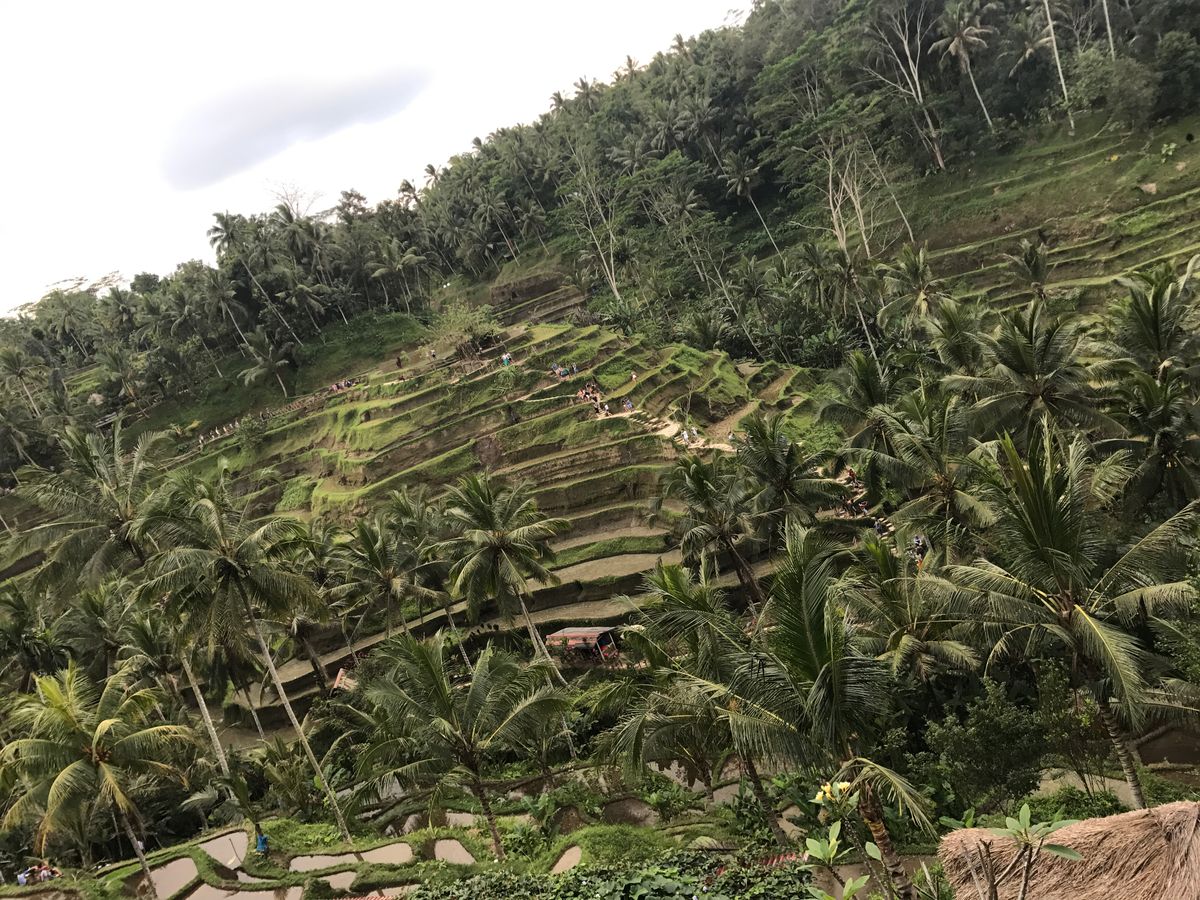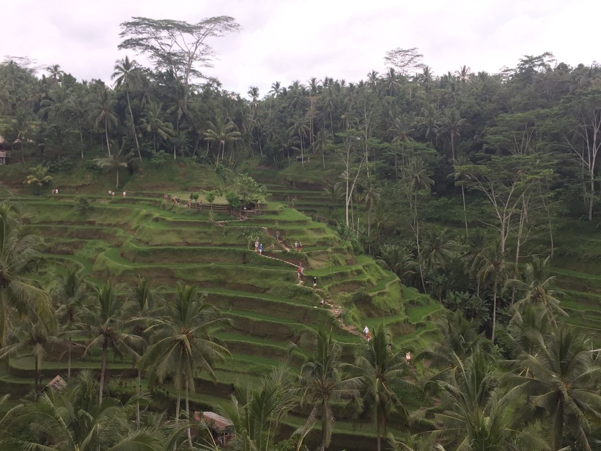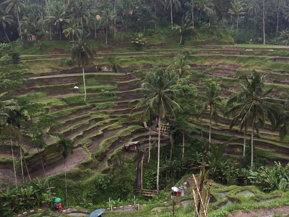 初めてのバリ島でした。日本でよく見かける棚田は石垣で作っていますが、バリ島の棚田には石垣が見当たらず。棚田を維持していくのは大変そうでした。
