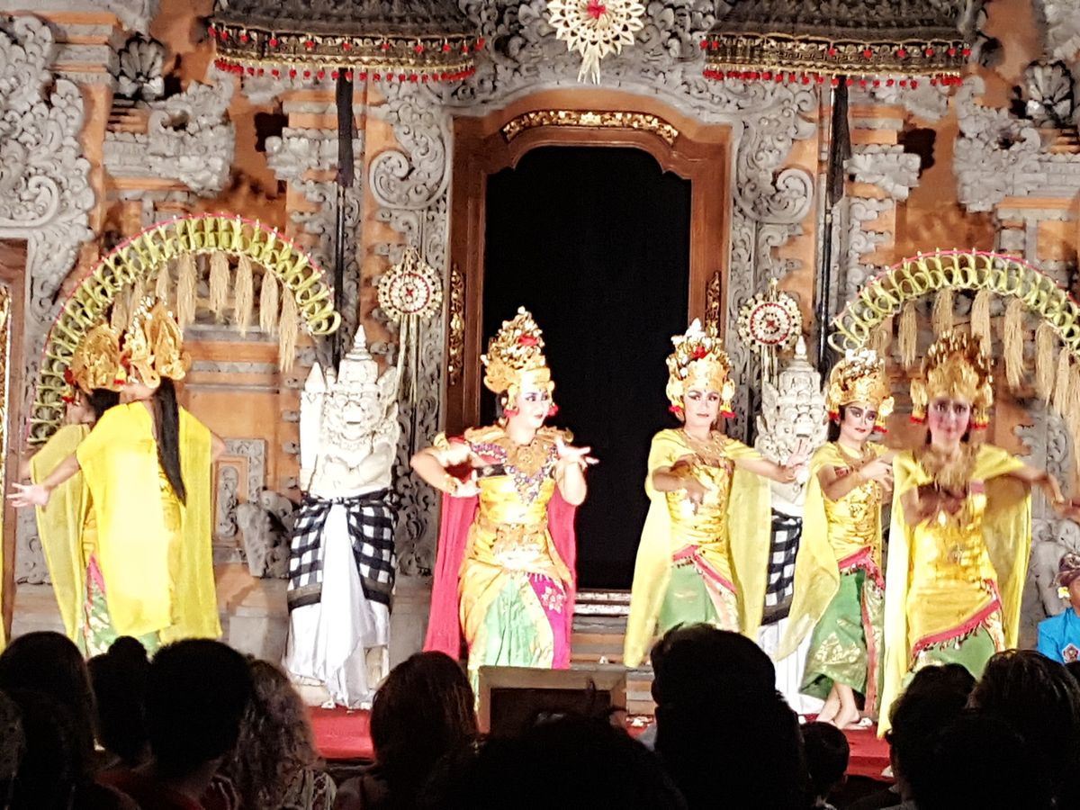 夕食を済ませるのに少し時間がかかってしまったのでウブド王宮でのダンス鑑賞の開始ギリギリに到着。ガイドさんは慣れてらっしゃるようでこちらでどうぞとイスを持ってきてくれました。自由席なのでダンス鑑賞に重点を置く方は早めに会場入りした方がよいと思います。