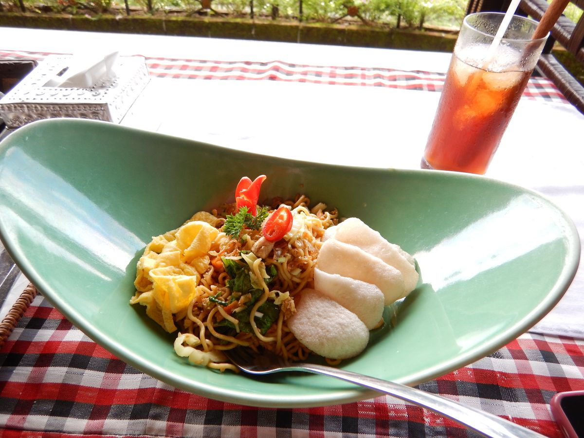 続いてはライステラスで昼食の予定でしたが、渋滞もなくスムーズだったので、時間に余裕があり、ウブドで自由時間。約一時間ほど街ブラを満喫しました。昼食はレモングラスティーとナシゴレンをチョイス。食事中、急に大雨になり、違う意味で貴重な体験をすることができました。雨宿りがてらにゆっくりした時間の中、食事ができました。続いて、再度ウブド街の散策。こちらも十分な時間配分に、歩いては休憩を繰り返し、フットマッサージ(1時間)や、アイスクリームを食べながら、ウブドの街を満喫しました。