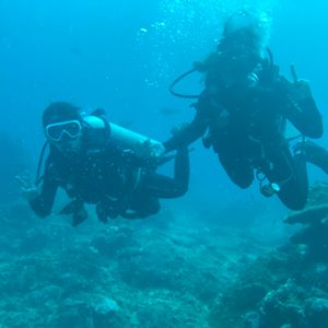 彼とわたしもダイビングは初めてだったのですが、2人に1人のインストラクターさんがついてくれたので安心して潜ることができました!