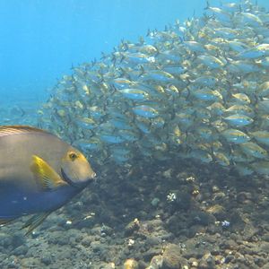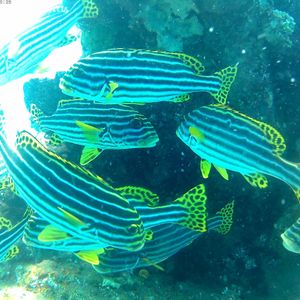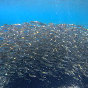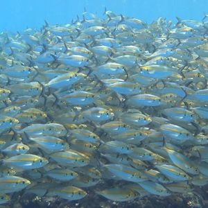 シュノーケリングで見る上からのアジ玉もきれいでしたが、ダイビングにて横から見るアジ玉のキラキラ感がたまりませんでした!
