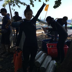 アグン山が噴火する可能性があり、当初のダイビングスポットが危険地域となっていたため、パタンバイという別のスポットでのダイビングになりました。朝6時にホテルを出発し、オフィスへ集合後・必要事項を書類に記入後、そこから一時間程かけてダイビングスポットへ移動しました。初めてのダイビングでしたが、日本人のインストラクターの方に、器具の使い方やトラブル時の対応方法など、丁寧に教えていただきました。ダイビング中は常にインストラクターの方が後ろでリードしていただき、こちらの状況を見ながら水中で合図を送り合い、安心して潜ることが出来ました。沢山の見たことのない魚を目の前で見ることが出来、味わった非日常感は一生忘れることが出来ない思い出になりました。違うスポットで二本潜ったのち、ランチをとり、オフィスへ戻り、ホテルへ送って頂きました。予定より早い時間でホテルに戻れたので助かりました。ありがとうございました。