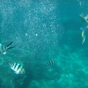 スピードボート最高です!帰りはかなりスピードが出て、すごく楽しかった!シュノーケリングの間は船が揺れてしまうので、ボートの上にいると船酔いしてしまうかも。お昼はそんなに期待できないかな。片言の日本語を話すスタッフがいました。もちろん英語も通じます。特に不便は感じませんでした。海の透明度は良くて、可愛い魚たちがたくさん泳いでいました。帰りには偶然にイルカの群れに遭遇して、興奮でした!初めての海外旅行の友達もとても満足したようです。
