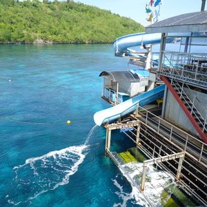 ついてシュノーケリングやバナナボート、ウォータースライダーで自由に遊べる。