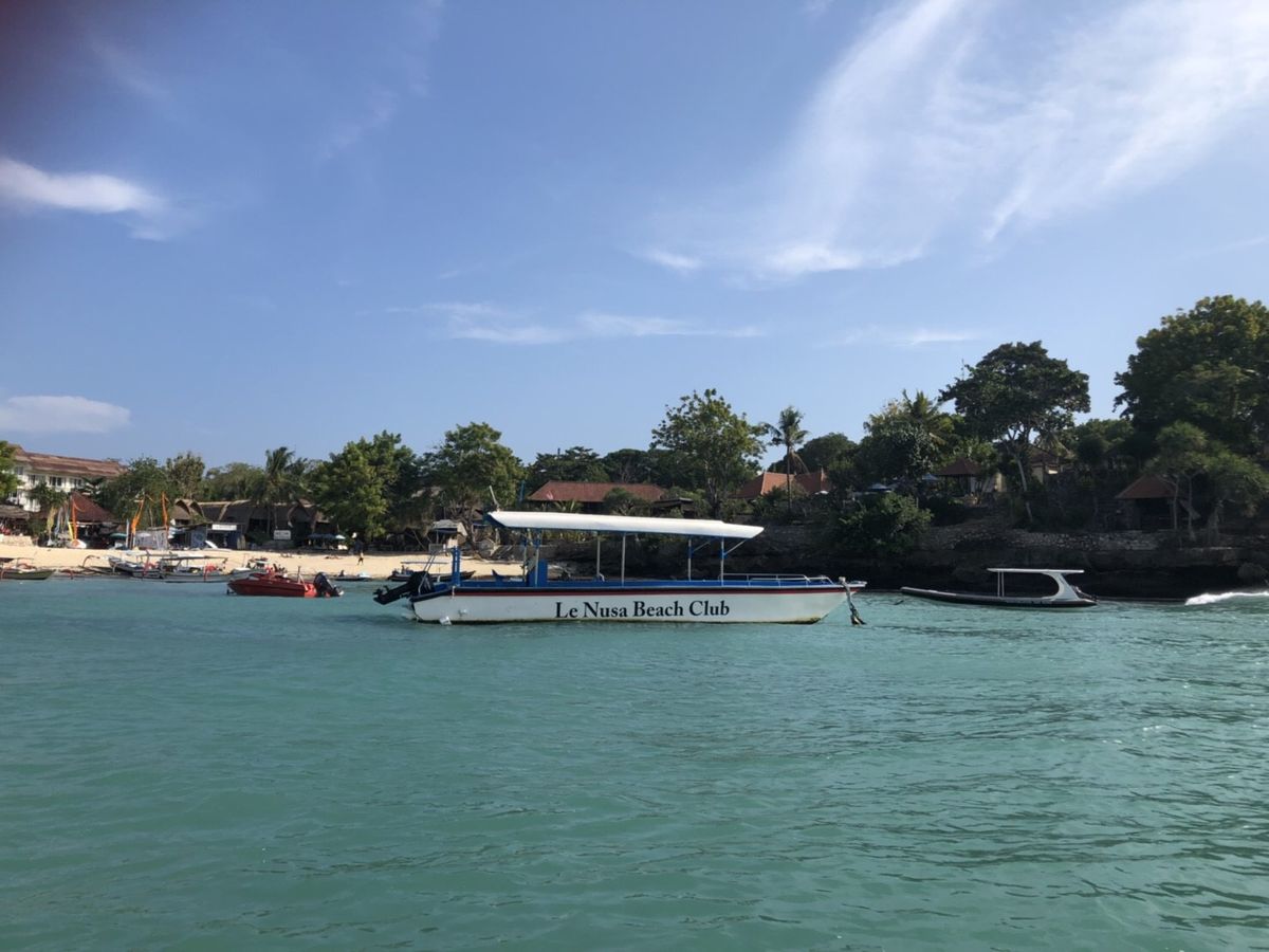 レンボンガン島への移動は比較的大きな船で、乗組員もよく訓練されているようできびきびと働いていました。ツアーを通してAEDを持ち歩くお医者様が同行しており、安心感があります。シュノーケリングやバナナボートなどツアー料金に含まれています。パラセーリングは別料金でしたが日本円で3000円程度で体験できます。大きな船なのですが、特に帰りはかなり揺れて、結構な数の人が戻していました。船酔いに弱い方は注意が必要です。