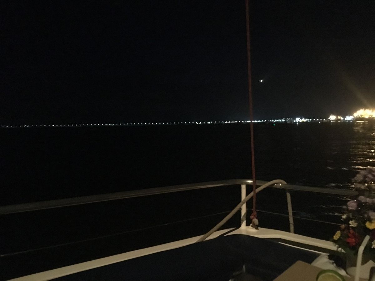 バリ島の港は開けた場所ではなく、明かりも少ない寂しい真っ暗な海のクルーズとなります。