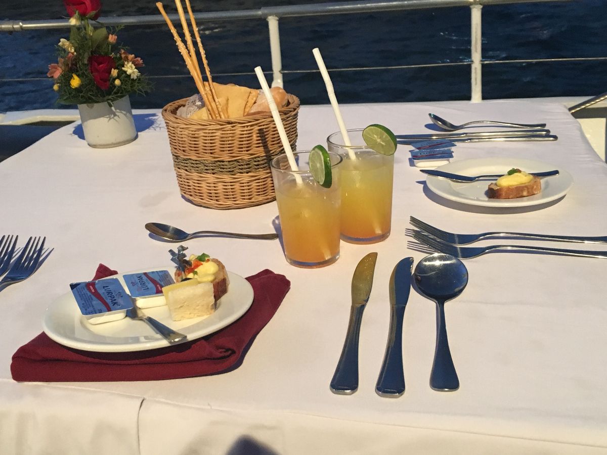 15年前は日本人も相当数乗っていた記憶があり、クルーの方々も結構日本語で話しかけてくれることが多く、到着直前には最初にシュノーケリングを楽しんだ方が混雑する順を考えるといいよとアドバイスにきてくれたり、食事もすぐになくなるからとマンゴスチンをいっぱい持ってきてくれたり、いろいろなスタッフの方が常に気を使ってくれている感じで、とても個人客に、そして日本人にWelcomeな感じでした。
