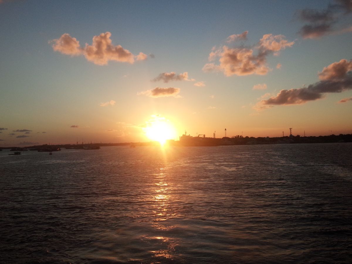 時間通りにピックアップが来て途中他のホテルに立ち寄りながら17:20頃にハーバーに到着。ウェルカムレディーにレイを掛けてもらい受付に。受付が済むと乗船までウェルカムドリンクとバンド生演奏サービスがあり、17:30から乗船開始。乗船時には一組ずつ記念写真を撮られ食事中に販売されました。この日は天気も良くとってもきれいな夕陽!ただ、ブノア湾は島の東側なので海に沈む夕日は見れません。島に沈んでいく…と言う感じでしょうか。乗船後は一時間ほど最上階のデッキで景色を楽しみながらドリンクを飲んだり写真を撮ったり(ここでも販売用の写真も撮られます)思い思いの時間を。たまたまこの日が少なめだったのかわかりませんが、もっと人がごった返しているのを想像してましたがかなり余裕がある状態でゆっくり過ごせました。そして他の方の体験談にもある通りインド系と欧米系の方が多く、日本人は私たちだけでした。