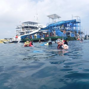 ダイビングは12時半からということで、事前に他の日本人と説明を受けることになり、それまでシュノーケリングやウォータースライダーで楽しんだ。