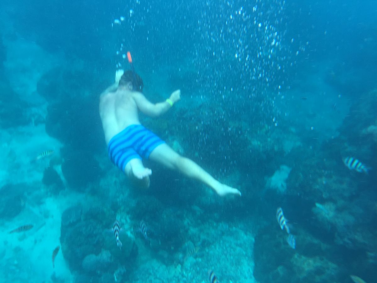 なんとか船乗り場に着き、アクティビティーを開始。しかし、シュノーケル一つするにも沖まで行くボートに乗るのに時間がかかり、15分程度しかシュノーケルしてないのに、帰りのボートを待つのに30分くらい待たされ、シュノーケルだけで一時間以上も時間をとられました。後から来た別のツアーのシュノーケルの方が先に戻っていました。