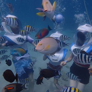 小4の娘は始めは不安そうでしたが、耳抜きができるとたくさんの魚たちにえさをあげて楽しめたようです。