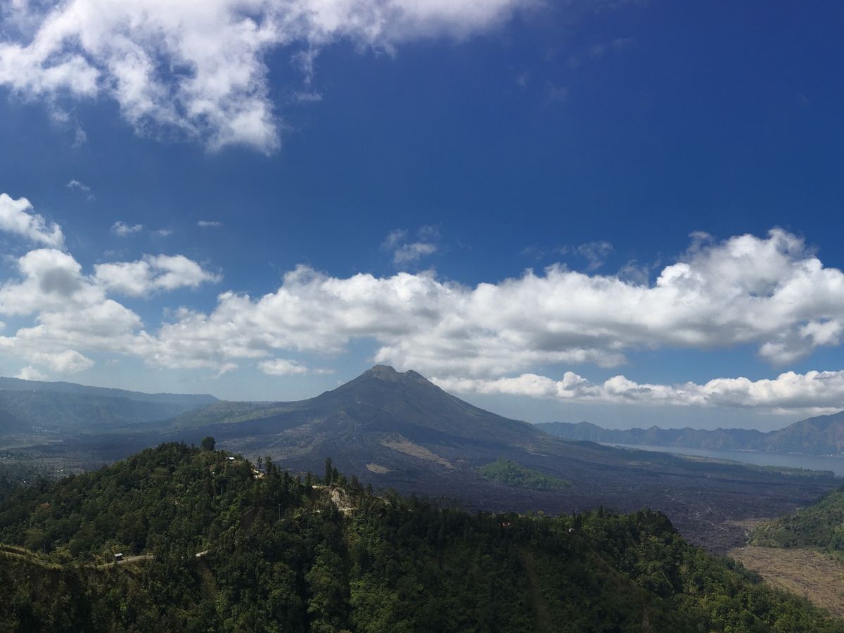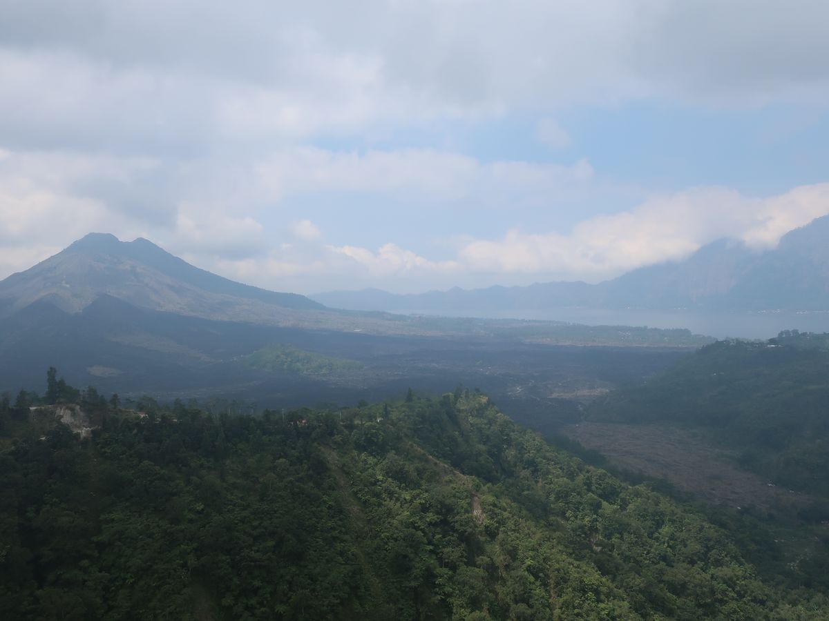 キンタマーニ高原のランチ。ビュッフェで火山、マグマ見ながらです。