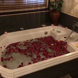 最終日にお願いしました。お昼にホテルをチェックアウトした後すぐにお迎えの車に来ていただいて現地へ行くと、やや山あいのこじんまりとした一軒家でとても良い雰囲気の場所でした。スパの個室に入ると鍵のかかる大き目の引き出しのようなロッカーに荷物をしまうことが出来ます。フラワーバスの時のバスタブやトイレ・シャワーも施術室内にあるので安心です。またマッサージの合間に、「トイレに行きますか?」、「お水を飲みますか?」と聞いて下さるのも良かったです。終始とても優しくて日本語の話せるスタッフの方が、3時間ずつ交代で対応してくれました。たっぷり6時間コースのスパでしたが夫婦ともに大満足であっという間でした。すっかり日も暮れたころ、建物の外の小屋で夕食をいただけますが、食事もおいしかったです。フライト前にとても癒される体験ができました。
