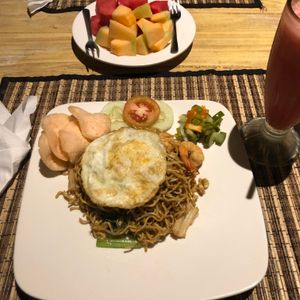 ・お庭でご飯が食べられる、快適でとても気持ち良い。フレッシュジュースとナシゴレン、美味しかったです