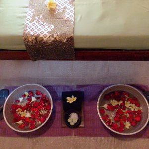 初めてのバリで、初めての本格的なスパを体験しました。今回は旦那さんと2人で、帰国の日の13時から予約して6時間のコースです。まず、ホテルまでの迎えが時間通りで、アユタヤスパ のロゴが入った車で来てくれました。また、日本語のできるスタッフさんが、到着時から最後までとても感じがよかったです。施術中も寒くないか、トイレは大丈夫か、喉は乾いてないか、気遣って下さり、なかなか、こちらから声をかけることの出来ないタイプの私は、助かりました。肝心の施術も、とても気持ちよく、あっという間に時間が過ぎていきました。トリートメントのために、少し時間を置くときとフラワーバスのとき以外はずーっとマッサージをしてもらえて、スタッフさんは6時間ほとんど休んでないのではないかと心配になるくらいでした。時間通りに19時に終わり、その後、夕食として、ナシゴレンとフレッシュジュースを頂きました。19時半頃食べ終わり、そのまま、空港まで送って頂きました。20時過ぎに空港に着いて、00:45のフライトまで十分な時間がありました。最大限、バリを楽しみたい方は00:45の帰国便なら、14時の予約でも十分かもしれません。帰国後も体が軽くて、本当におすすめです。