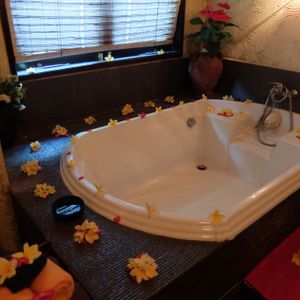 Bコースを帰国日に一人で受けました。マッサージ、フェイシャル、フラワーバス、クリームバス、どれも満足。技術も満足です。今までよそで色んなマッサージを受けたことが何度もありますが、ここは日本人経営とのこと、特徴は日本人が一番凝っている、頭、首筋、肩、背中をすごーくしっかりマッサージしてくれることだと思います。二人でも入れる位大きなフラワーバスに一人で入りゴージャスでした。癒されました。次回機会があれば、初日に行って思いっきりほぐしてもらい日本での疲れをDELITEしてからバリ時間を過ごしたいと思います!!
