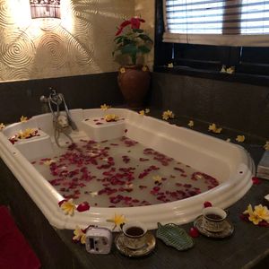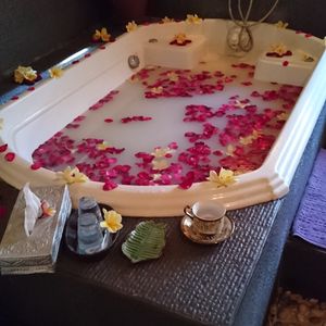 ホームページで見た通りの花に包まれた部屋で優しいオイルマッサージからスタート!フットもして頂き、次のフェイスを終える頃には寝ていたかも…。その後バラの風呂に浸かり、飲み物クッキーを頂きながらゆったりと…。最後はヘッドマッサージで至福の時間でした。送迎付きで贅沢な三時間半を過ごせ、また行きたいと思いました。