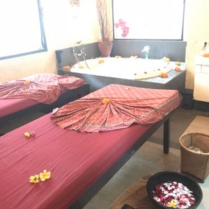 ホテルまで迎えに来てもらい、ロビーで好きな匂いと食事を選び、カップルプランの個室へ!マッサージをしてもらってる間に、お風呂に2人の名前とハートが描かれたフラワーバスを用意してくれて、最終日の思い出に華を添えてくれました。フラワーバスで毛虫が1匹いたけど、生花だし仕方ないです(注意書きに書いてありましたし)。お食事も景色の良いテラスで美味しくいただきました。いっぱい癒やされた後で、希望のショッピングモールまで連れて行っていただきました。とってもオススメのスパです(*^^*)
