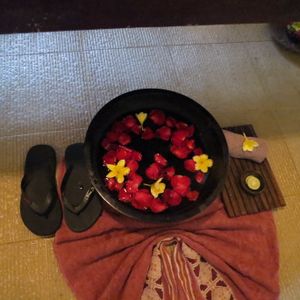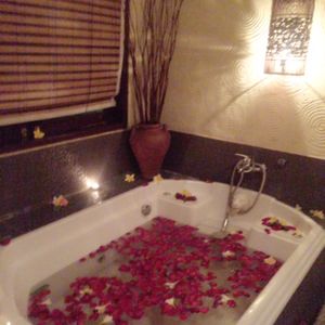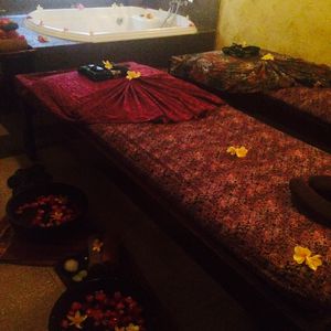 メニューはトロピカルアフタヌンティートリートメントVIPルーム3時間半コースでした。旦那と二人で受けさせて頂いたので、私がバリニーズマッサージ、ストーンマッサージ、シロダーラ、フラワーバス、アロマフェイシャルのコース。
