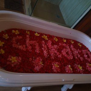 マッサージの後のフラワーバスでは私と一緒に行った友人の名前がお花で作られていて、とってもかわいかった!