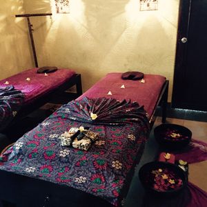 ストーンマッサージは最初やや熱く感じますが、温泉に入っているような心地よさで、すぐに慣れました。シロダーラは全くわからず受けたのですが、熱いオイルがとても気持ちよく、寝てしまいそうになりました。旦那は最初のマッサージからイビキかいてました(笑)