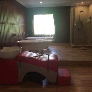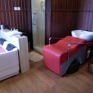 次は、ヘッドスパ。初めて体験しました。髪がひっぱられるので眠くはなりませんでした。その後、体だけシャワーをし、髪は、別室の美容室のような場所でスタッフさんが洗ってくださり、さらにブローもしてくれました。髪はサラサラで 良いにおいでしたし、体も顔もスベスベになりました。とても、気持ちの良いスパでした!