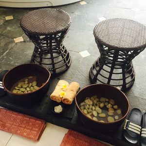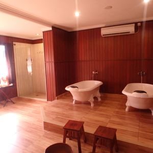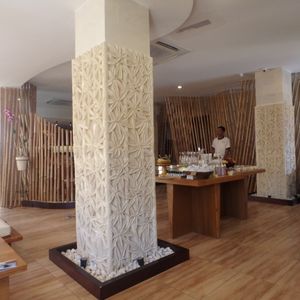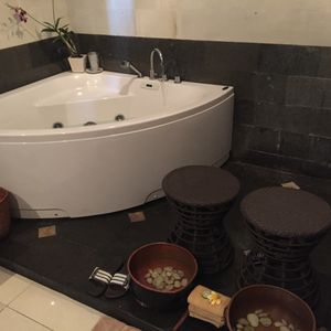 トロピカルアフタヌーンティートリートメント inVIPルーム(4時間30分)をお願いしました。受付で施術内容の確認、アロマの選択、休憩時間をどこに挟むか、などのチェックをして荷物を預けます。金庫もあり貴重品も心配ありません。また受付スタッフ、施術者も日本語が通じますので安心して行うことができました。私達のVIPルームは最上階のお部屋でした。まずはマッサージ60分、選んだオイルでマッサージしてくれます。その後ホットストーンマッサージ30分、初めてでしたがストーンが丁度良い熱さで、本当に気持ちよかったです。バスタイム30分、ジャムウを入れて頂きました。その後シロダーラ30分、ココナツオイルで良い香りです。もう少し時間があるとさらに気持ち良いだろうと思いました。最後にクリームバス60分、アボカドのクリームを選びました。ヘッドスパもよかったし、何と言っても終わった後の髪の毛がサラサラ!本当にオススメです!施術後60分のお食事タイム、開放感のあるテラスでゆっくりすることができます。帰りの飛行機の時間があったので、60分使わずに帰ってしまいましたが、スタッフの方が、「まだ時間ありますよ」など言ってくださりました。(施術や食事の時間はストップウォッチでしっかり計ってくれました) 今回私たちのミスで、集合時間をなんと30分も遅れてしまいました(交通渋滞でタクシーを下ろされてしまい、ホテルまで自力で歩いた為。ネットが使えず連絡もできなかった)しかし送迎の方はホテルで待っていてくれ、大丈夫よーと笑顔で対応してくださいました。到着後のスタッフの方にも謝りましたが、大丈夫ですよと。しかも施術時間も削らずに行ってくださいました。申し訳ない気持ちと感謝の気持ちでいっぱいになりました。次回バリに行くことがあれば、また必ず行きます!今度は時間に余裕を持ちます。