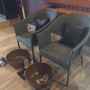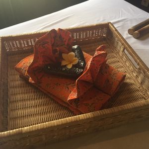 あとメニューの中にフェイシャルが入ってますがフェイシャルは苦手なので別のメニューに変更したいと連絡したら現地で話し合ってほしいとの事だったので安心しました。日本人オーナーの方が出迎えてくれてきちんとメニューの組み立てをしてくれました。内容もすごく良かったです。お昼ごはんもナシゴレンとか何種類かから選べてフルーツとジュースも無料で付きます。合間で出されるレモンティーとかお水も嬉しかったです。