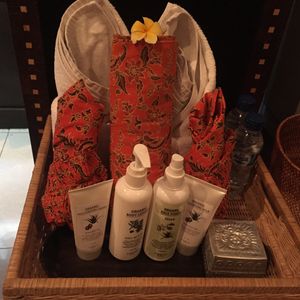 フラワーバスとヘッドスパも受けましたが帰国してから髪の毛がサラサラだし日焼けの皮がめくれたりする事もなくよかったです(^^)