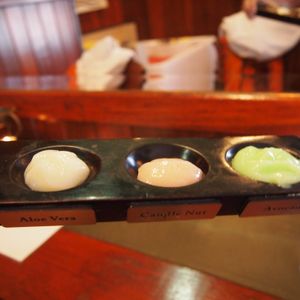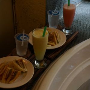 レビューがよかったので、最終日旦那に頼んで一番長いコースを予約。ホテル送迎、スタッフ対応◎日本語説明、メニューあり。ストップウォッチを見せながら進行。初めにボディトリートメント。オイル、ホットストーンきもちよくてうとうと。寝返りの度起こされるため頭がボーッとする。途中フラワーバス。20分で体だけ洗ってくださいとミネラルウォーターを渡しスタッフはいったん退出。次にフェイシャル。日本のメ○ードとかを想像していくと別物。スクラブでゴシゴシ→スポンジでゴシゴシ→オイルでゴシゴシ+強めのマッサージ。もちろんスチームなし、最後に生ぬるいタオルでふき取り、クーリングなし毛穴全開の顔ヒリヒリ(><)あと非常に言い辛いけど、スタッフさんマスクしてるのになぜか口臭なんだかマスクが汚れてるのか吐息が臭くて非常に苦痛だった( ̄▽ ̄)ほんと残念。でっかいガムランボウルでころころされて、シロダーラは温かくて爆睡。催眠術(笑)確かにストップウォッチ必要。次に部屋を移動してクリームバス。この部屋だけ冷房つけたばっかで暑かった。窓開けたらカーテンが揺れてドライヤー中すっぴんに紫外線が…。クリーム、サラサラというより私はべたべたしただけだった。メイク直しする時間も場所もないので、トイレでメイク、ヘアアイロンは電源とれず。最後に軽食のミーゴレン。盛り付けも可愛いしおいしかった。