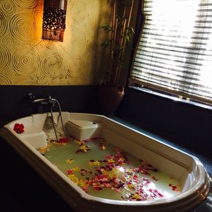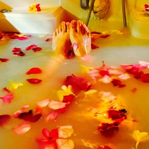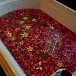 一度体験してみたかったフラワーバスに入れて満足ですが、シャワーが水で寒かった。。。