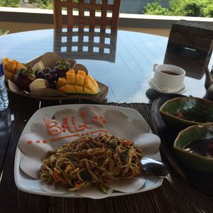 終了後の軽食はミーゴレンを選びました。マンゴーなどのフレッシュフルーツもついてるし、施術中と軽食時の合計2回飲み物もついています。ミックスジュースがすごく美味しかった!