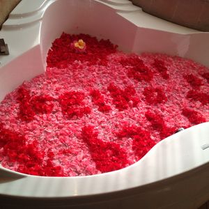 マッサージ、ホットストーン、スクラブで約2時間。フラワーバスに入り一先ず休憩。