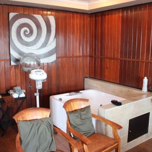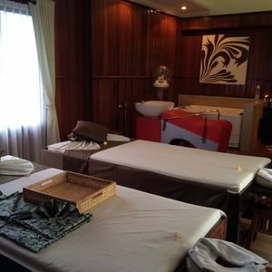 家内と二人でバリに着いた日に受けました。いくつか選択できて、私たちは、①バリニーズ真マッサージ60分 ②ストーンマッサージ45分 ③フラワーバス30分 ④クリームバス60分 ⑤食事(焼きそば、エビ、チキン、ライス、パパイヤジュース、フルーツ各種のデザート)の内容でとっても満足できました。超お勧めです。