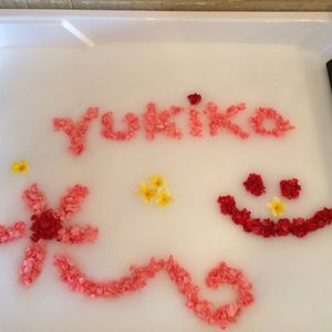 お風呂にかわいらしいデコレーションをお花でしてくれます!!!!!!