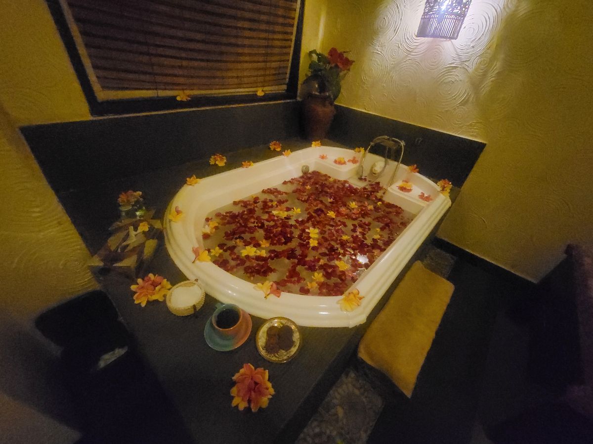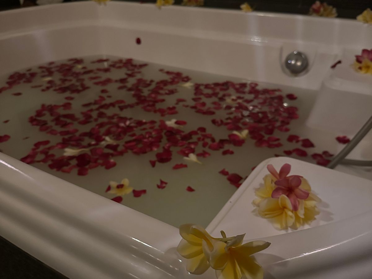 アロマオイルやホットストーンのマッサージにフェイスマッサージ、フラワーバスの後のクリームバスとあっという間の5時間でした。
