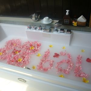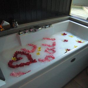 最初に貴重品を預けてしまったので、デジカメを持ち込むことが出来なかったのですが、フラワーバスがハートの形をしていてとても可愛いです☆これから参加される方はカメラを持って行かれることをお勧めします。