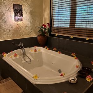 出発が夜便のため、チェックアウト後の過ごし方を迷い、空港までの送迎もついてるとのことで6時間コースを見つけて予約しました。スパの周辺はでこぼこ&急勾配&細道で到着までヒヤヒヤしましたがドライバーさんの運転が丁寧で酔ったりはしませんでした。到着後カルテを書いて施術ルームへ。フットバスからでした。そこからバリニーズマッサージとストーンマッサージ、フットマッサージと続きフェイシャルマッサージとパック。ボディパックの後シャワーを浴びてフラワーバスに入りました。その後部屋を移動してクリームバス。フェイシャルパックの乾かす時間が長めなのがちょっと気になりました…