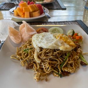 日本人は、砂糖なしの紅茶も飲む人多いし、フレッシュジュースも甘さ控えなら良かったのに、と思いました。沢山残してしまいもったいなかったです。でも、ナシゴレンは美味しく完食でした。