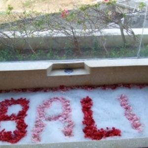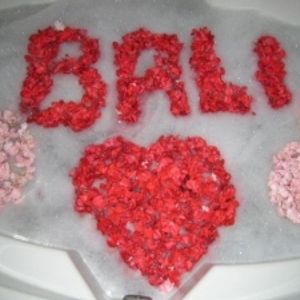 まず冷たいレモンティーが出て、着替えた後はマッサージ、ボディスクラブと続き、その後のフラワーバスではなんとお花でBALIの文字が書かれていました。