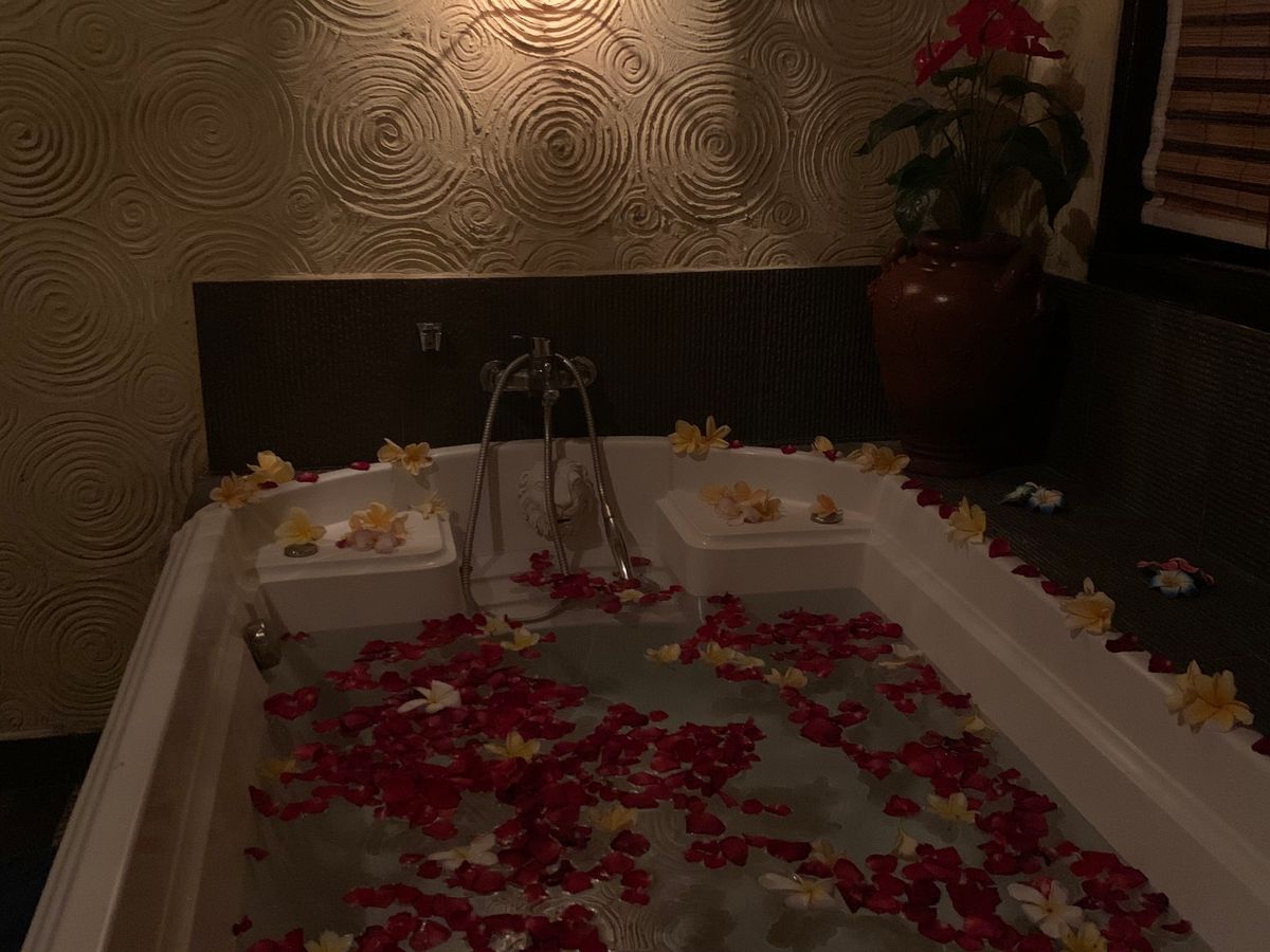 初めてのバリでのスパでしたが、思い切って5時間コースにして大正解でした。全てのスタッフの方が終始笑顔で丁寧に対応していただき、最高に気持ちの良い時間を過ごすことが出来ました。ボディマッサージのアロマオイルは体調に合わせてたくさんの種類から選ぶことができ心地良い香りに包まれてリラックス出来ました。深呼吸して香りを身体に巡らせてから施術に入る感じも良かったです。色々なメニューの長いコースで巡りも良くなり3回もお手洗いに行きましたが、全てお声がけいただきありがたかったです。マッサージは全て気持ちが良く疲れがほぐれました。そして、フラワーバスに感動!よく見ると花びらで名前が!嬉しかったです。シャワーも浴びてそろそろおしまいかな、と思ったら、クリームバスが始まり、しっかりシャンプーもしてもらったので、帰ったらそのまま寝ることができました。食事もお茶も美味しかったです。友達にもおすすめしたいし、またいつか来たいと思います!