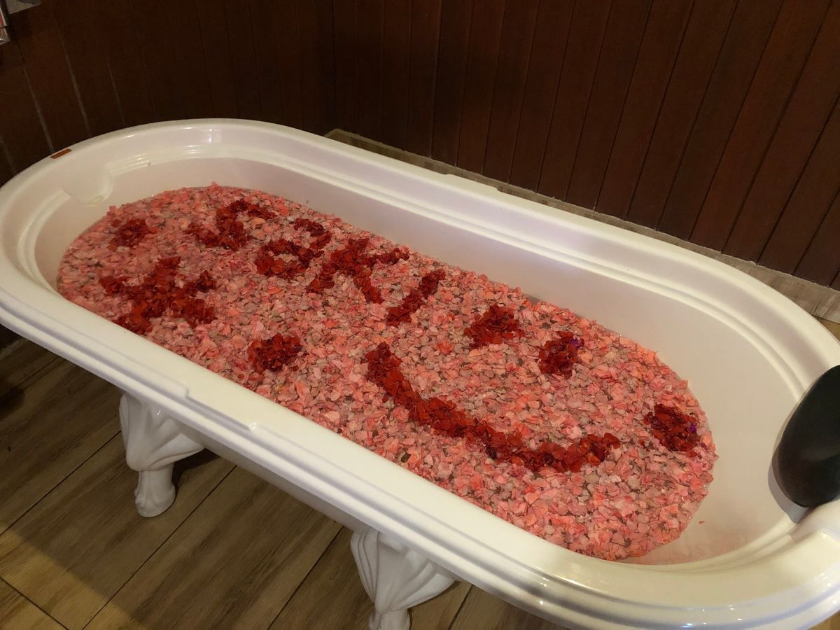 マッサージ中にフラワーバスセッティングされてフラワーが入ってしまえばパッと見はキレイ風だけど、でも底面はあれか、、と思ってしまうとテンション下がり。。