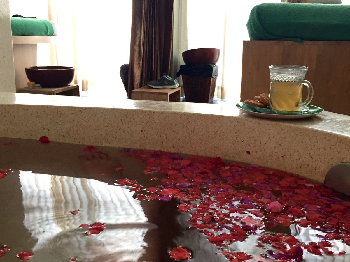 施術中寒かったという感想が多かったので、心配してました。でも寒くないか聞いてくれたのでその点は大丈夫でした。マッサージは全身オイルとスクラブで丁寧にやってもらいました。気持ちよかったです。フラワーバスは初めてでした。写真もとってもらいました。食事も美味しかったです。思ったより量が多かったです。送迎も不安になることなく、安心してお任せできました。スパもホテルもスタッフの人がとても笑顔で親切でした。