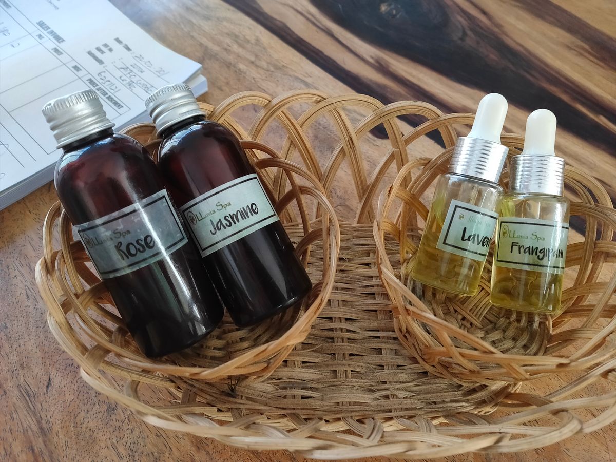 各々が、マッサージオイルやボディクリームの香りを選択できました。