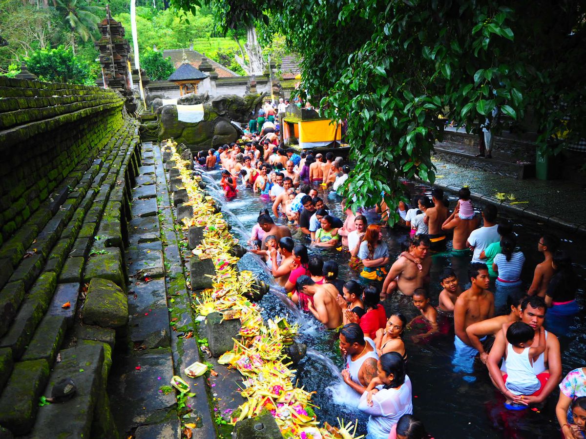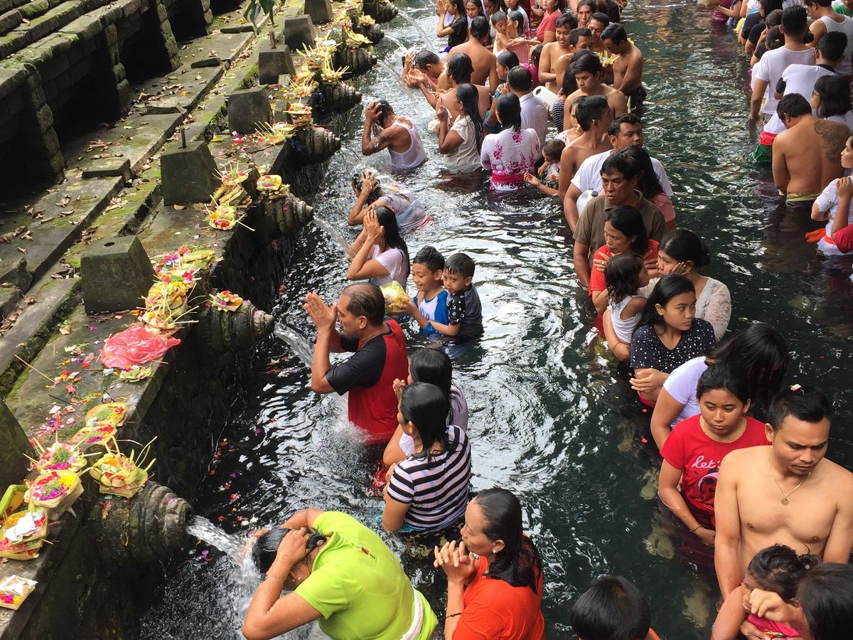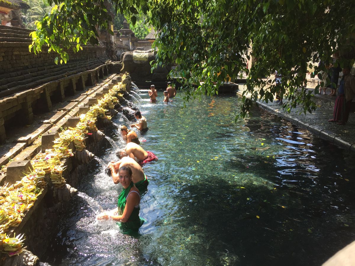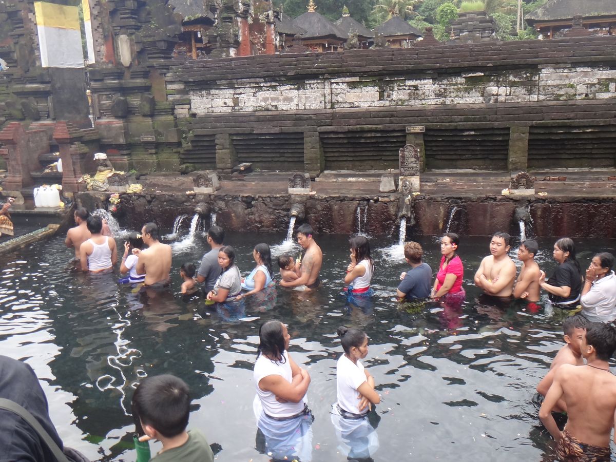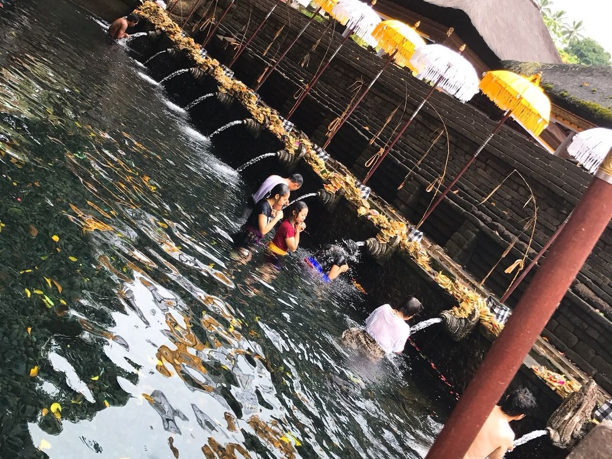 ティルタエンプルでは希望すれば沐浴体験ができます。きれいな湧き水ですし、おもいっきり頭にかぶって大変良い経験になりました。寺院内には腰に巻くサロンの貸し出しや、着替え用の更衣室、鍵付きロッカーもあります。ただし、更衣室は男女共同です!